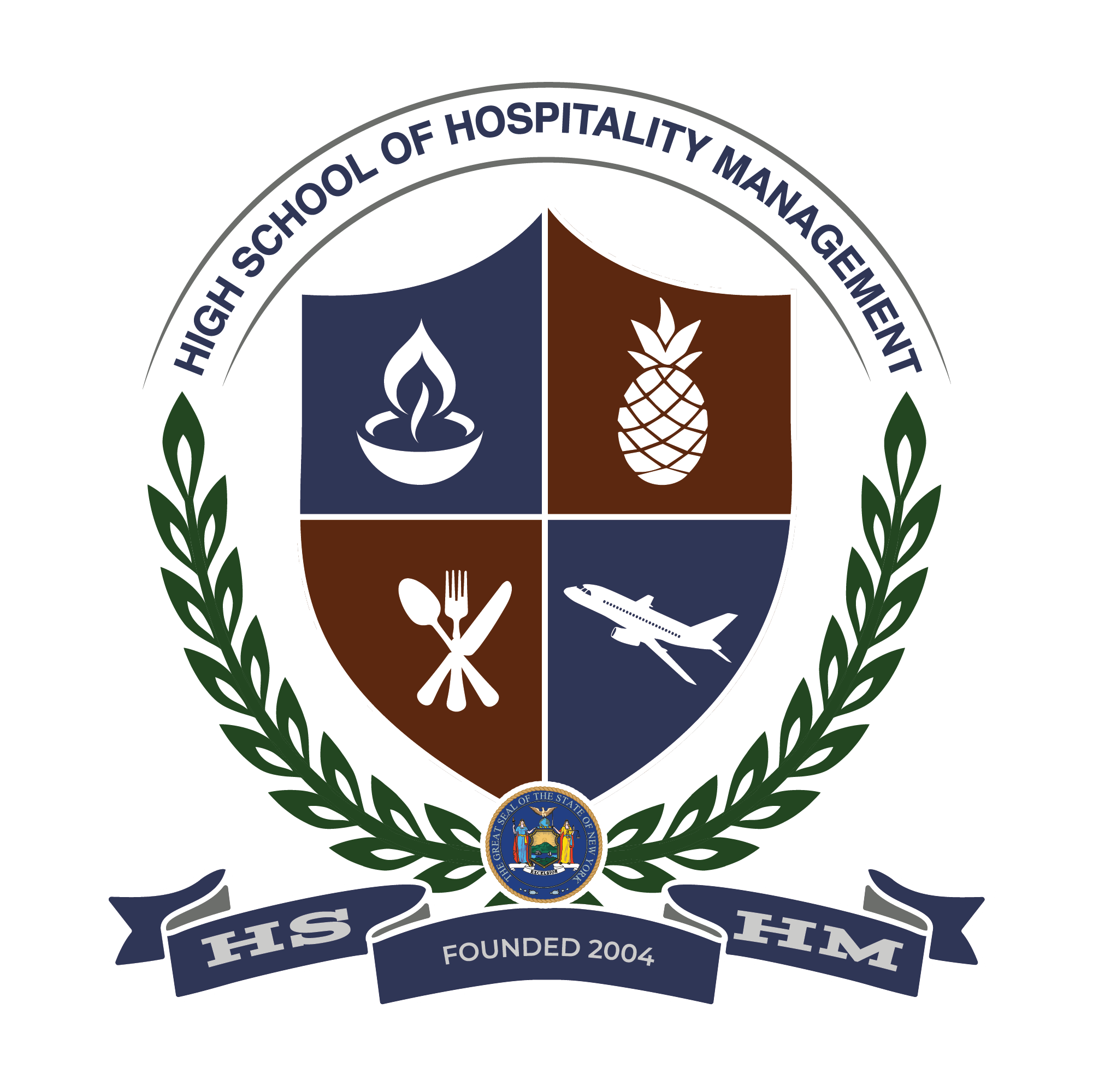 The High School of Hospitality Management (HSHM) is a New York City public high school established in 2004. In 2005, Leury Baez (student) was commissioned to create the high school's crest.